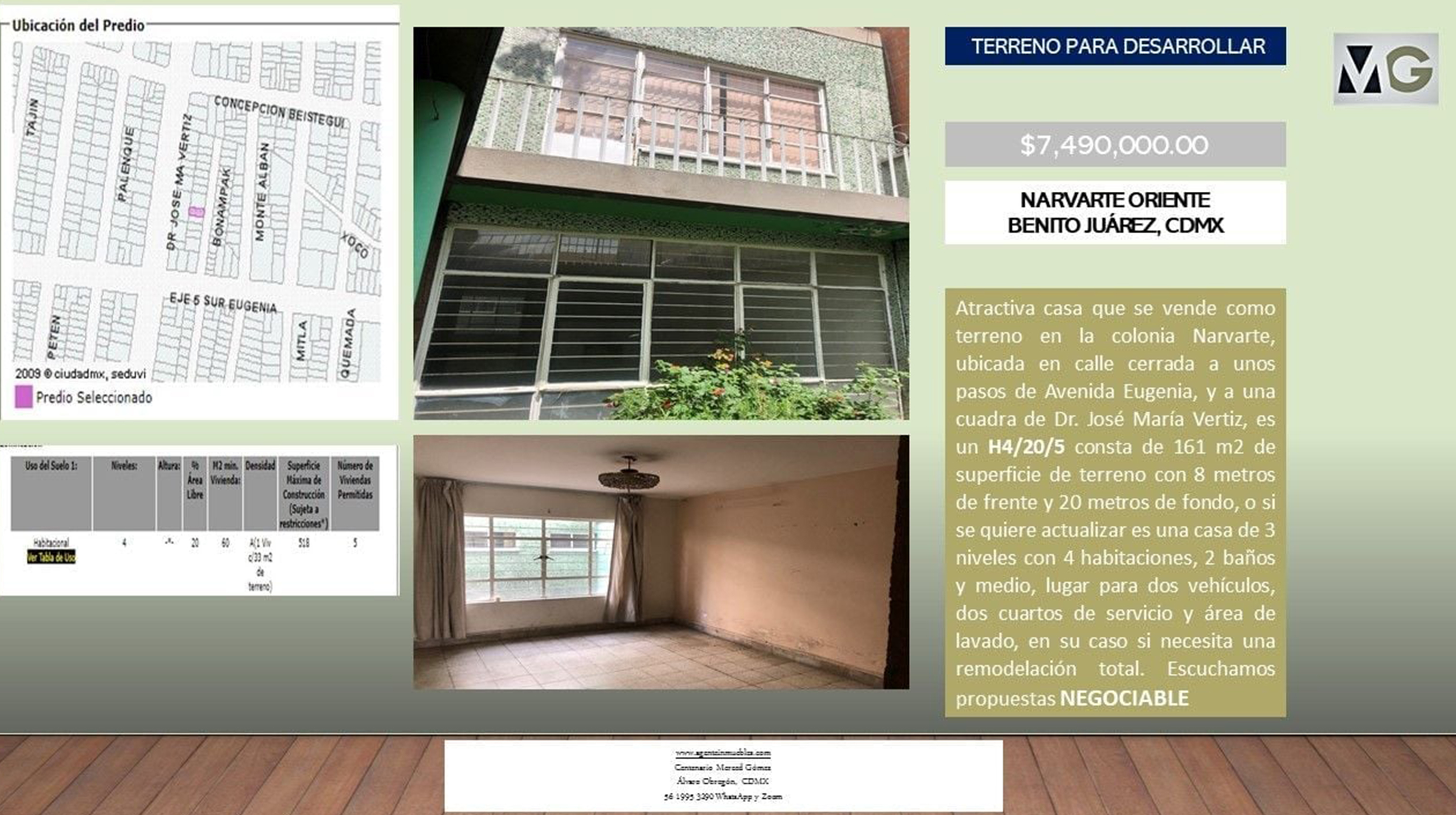 Atractiva casa que se vende como terreno en la colonia Narvarte, ubicada en calle cerrada a unos pasos de Avenida Eugenia, y a una cuadra de Dr. José María Vértiz.