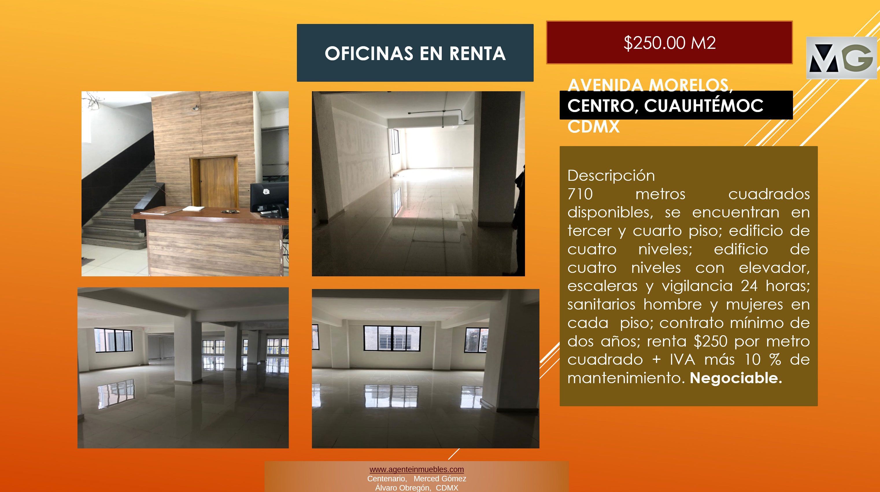 ¿Listo/a para tu mejor etapa empresarial? Bríndale a tu empresa o negocio el empuje y la presencia que necesita mediante esta gran oportunidad de renta por m2 en el corazón de la ciudad. No dejes de entrar en contacto conmigo de manera directa para enseñarte estos grandes espacios de oficina de manera personal.